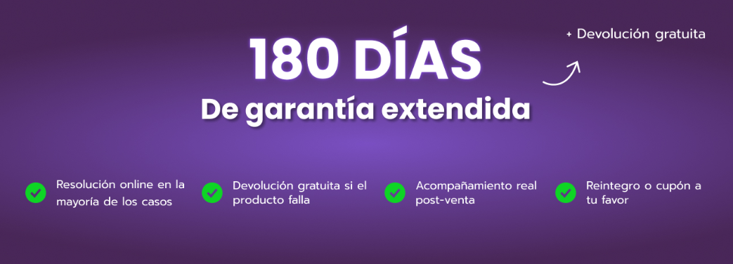 Todos nuestros productos cuentan con 90 días de garantía, extensible si vos lo deseas a 180 días, desde la fecha de recepción.